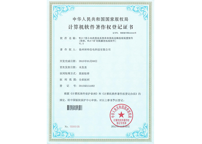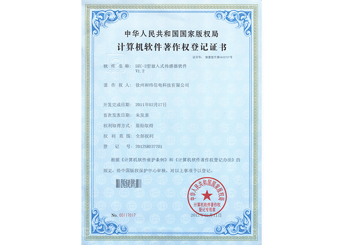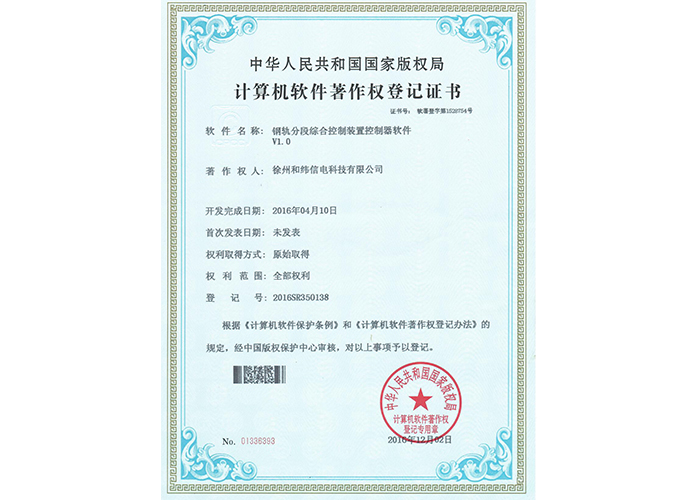 • 10軟件產品登記證書——和緯信電HSCC-2型排流控制器軟件V1.2
